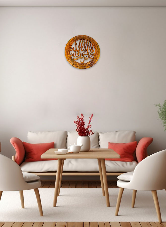 Enhance your living space with this handmade wooden wall hanging frame showcasing the Kalima Tayyiba in beautiful Arabic calligraphy. Designed in a rounded wooden frame, this Islamic decor piece serves as both a spiritual reminder and a stunning art piece for any wall. A perfect addition to homes, prayer areas, mosques, or as a thoughtful Islamic gift.