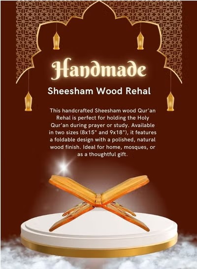 handmade wooden qur'an rehal – foldable quran stand, available in 2 sizes (8x15 & 9x18 inches)Handmade Wooden Qur’an Rehal – Foldable Quran Stand, Available in 2 Sizes (8×15 & 9×18 Inches)