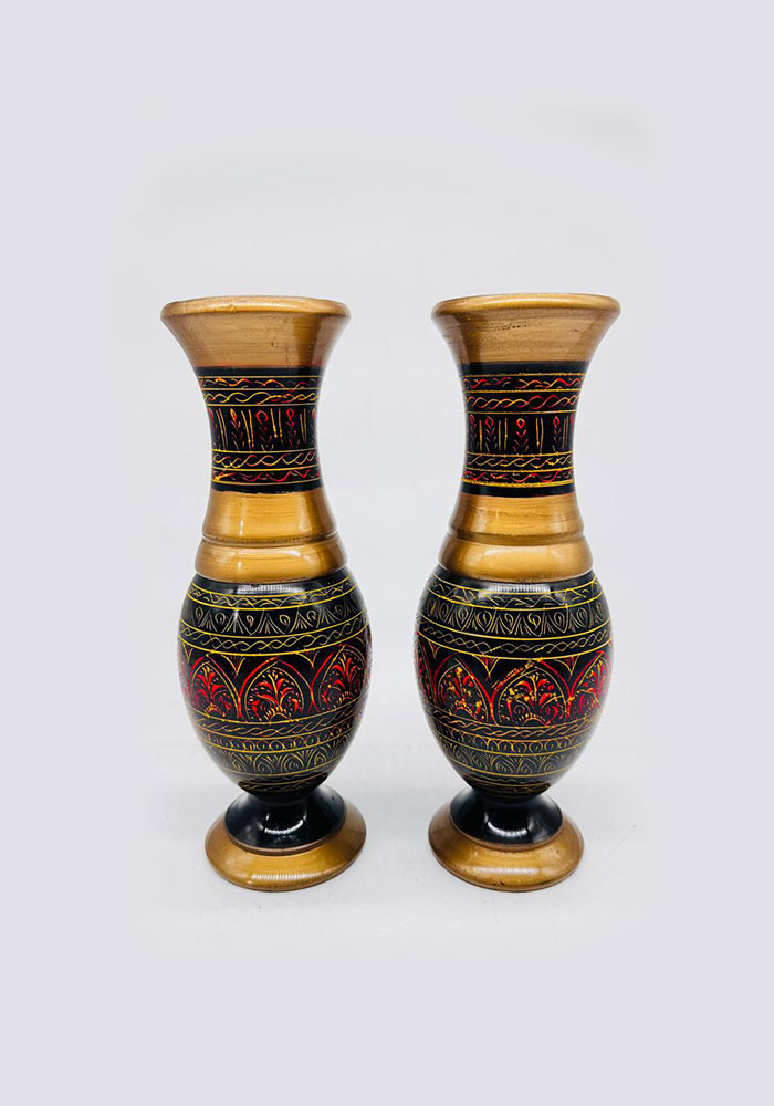 Multicolor Wooden Vase (Guldasta Pot) Handmade Decorative Design – 10 Inch
