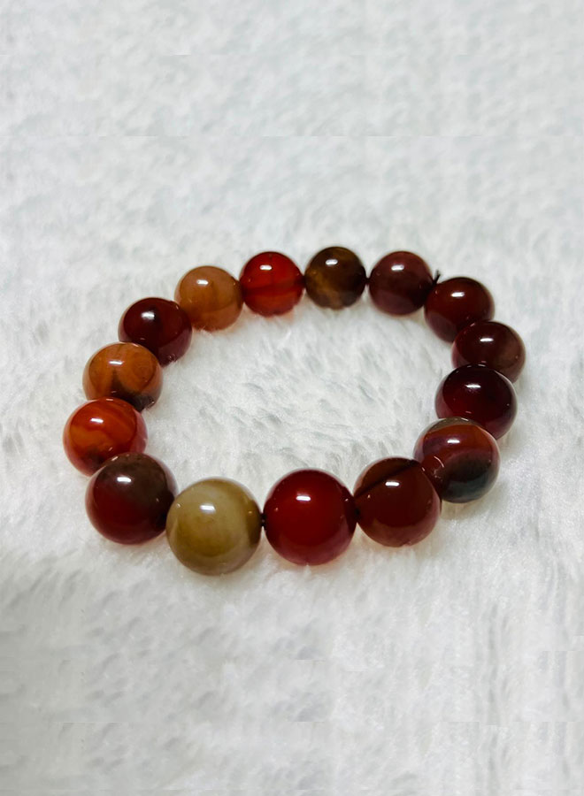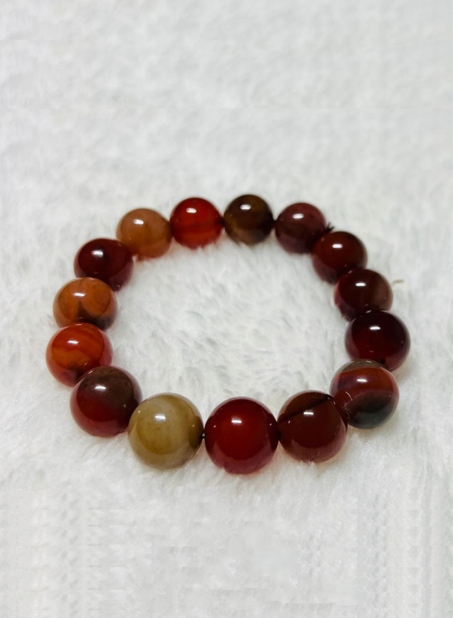 Natural Red Haqeeq Hand Bracelet – 14mm Bead Size | Stylish and Healing Stone Bracelet