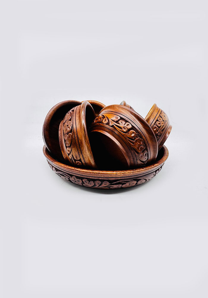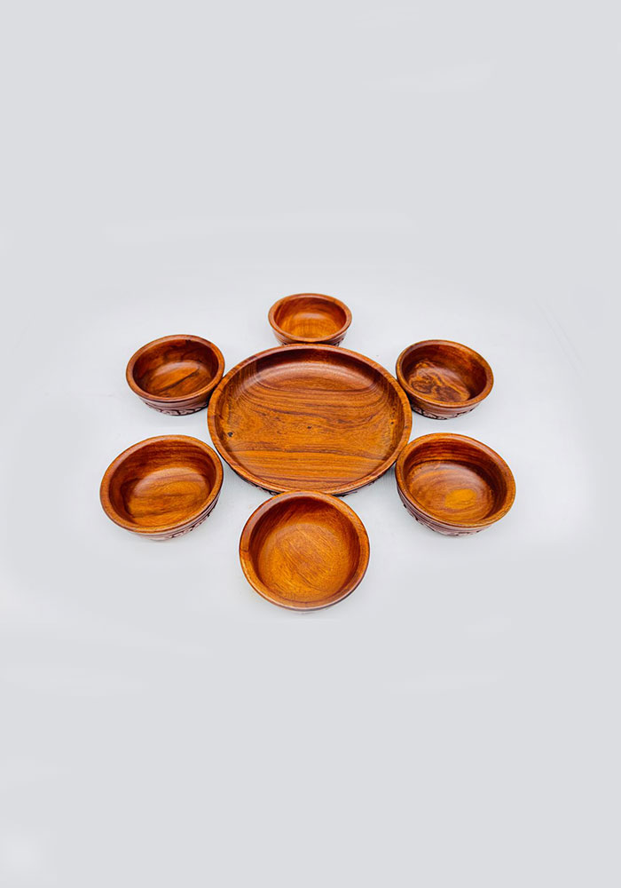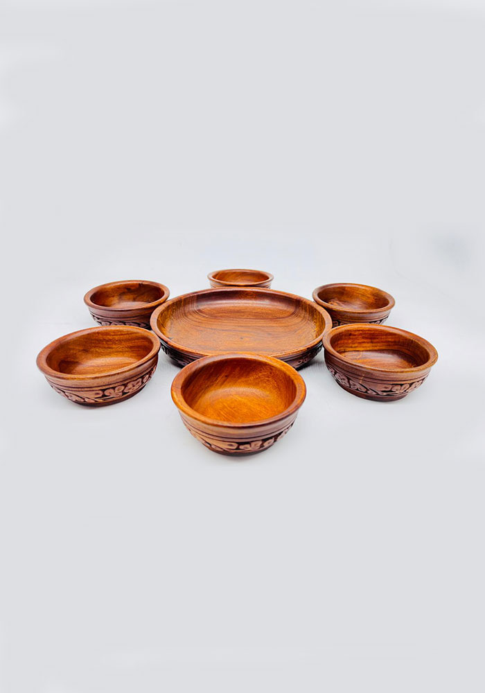 Upgrade your dining and serving experience with this handmade rosewood wooden bowl set, featuring a beautifully crafted tray and 6 matching plate bowls. Designed for both decoration and everyday use, this serving set combines traditional craftsmanship with practical functionality.