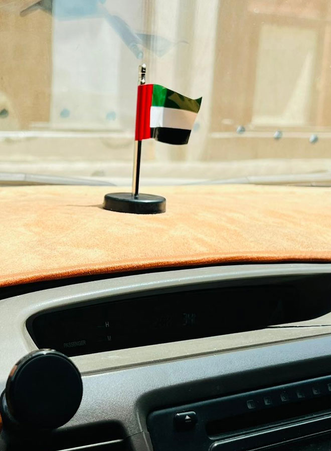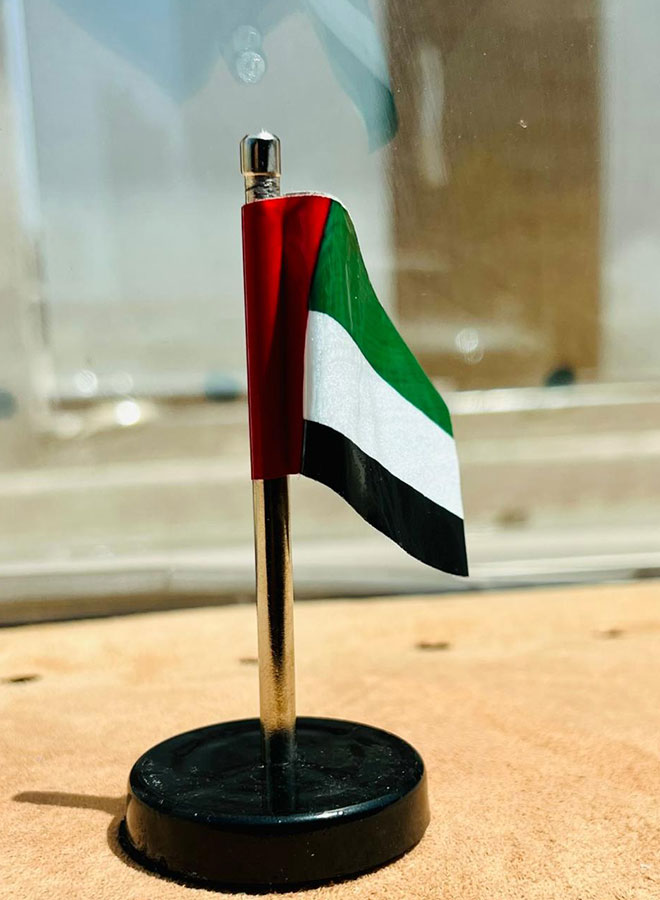 Small Car UAE Flag Dashboard – 4-Inch Mini Flag for Car Decoration- Flag Stand for office and car- Table Flag Stand