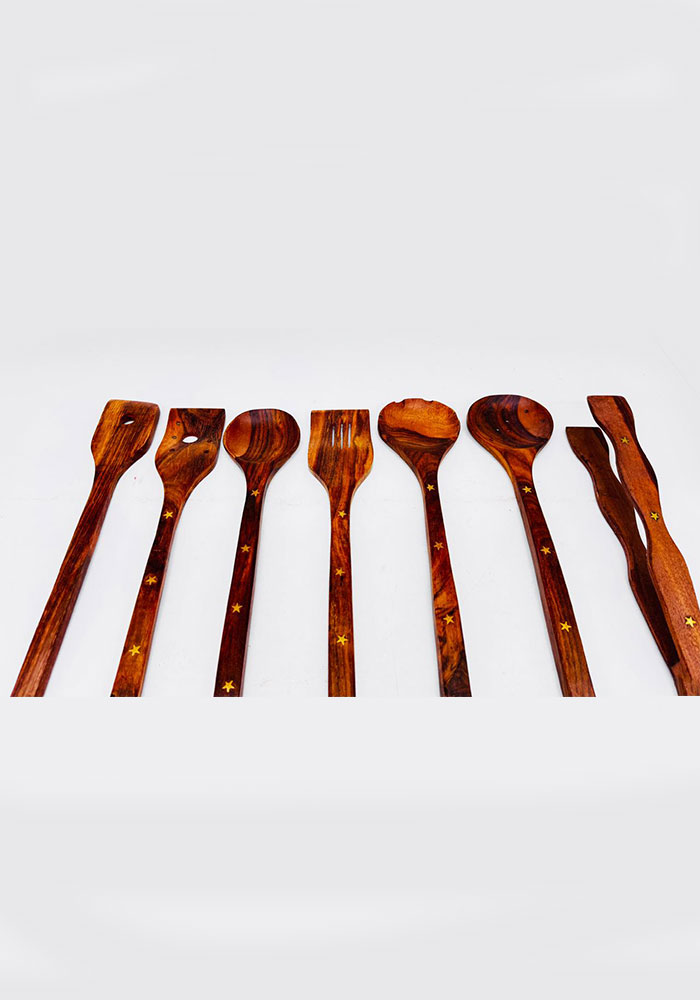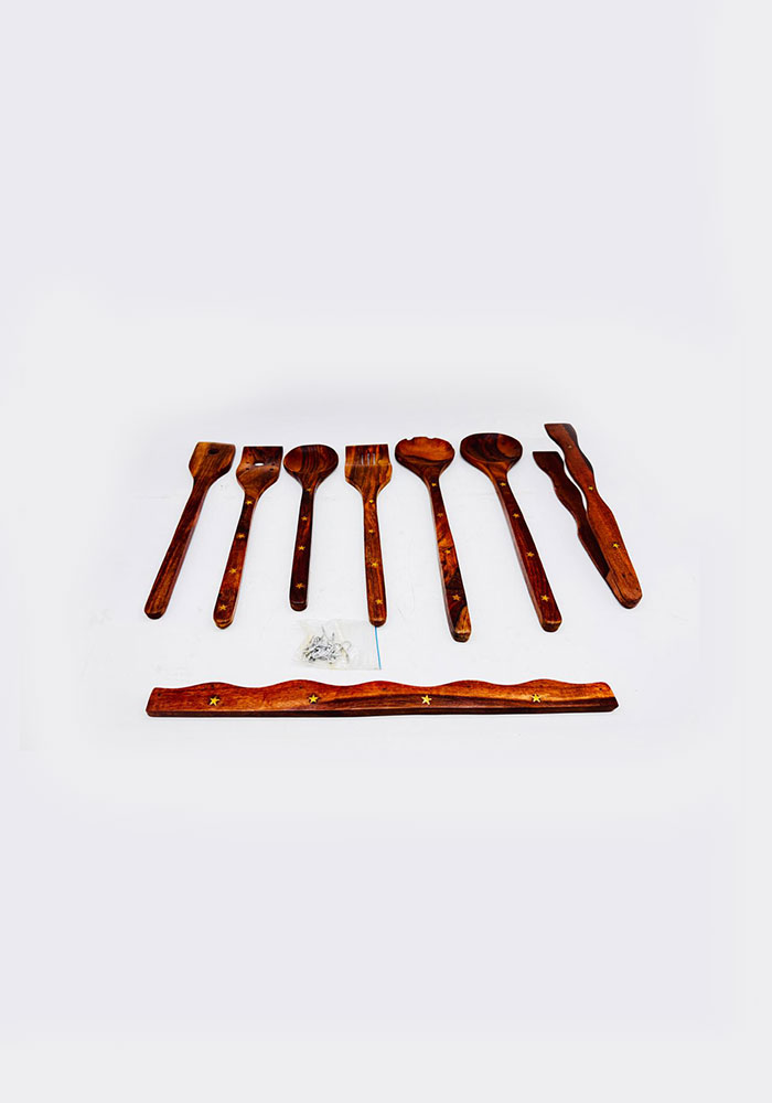 Upgrade your kitchen with this handmade wooden cutlery set, featuring 7 essential cooking utensils along with a convenient wall hanging stick for organized storage. Crafted from durable natural wood, the utensils are strong, lightweight, and safe to use with non-stick cookware.