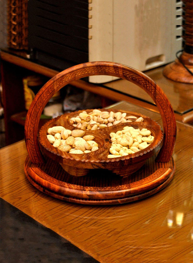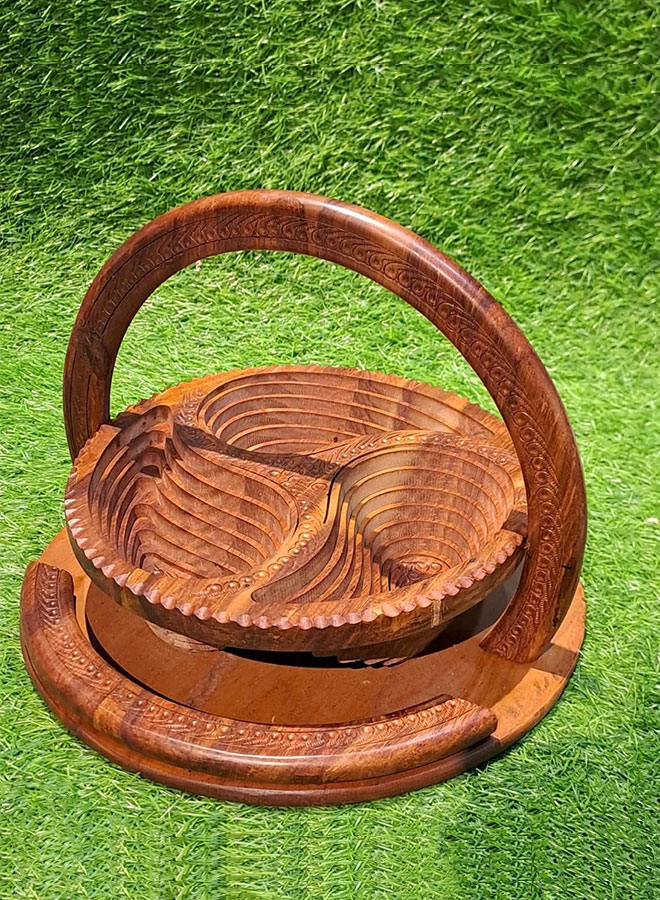 Wooden Dry Fruit Basket – 10-Inch Foldable Decorative Basket for Serving and Storage