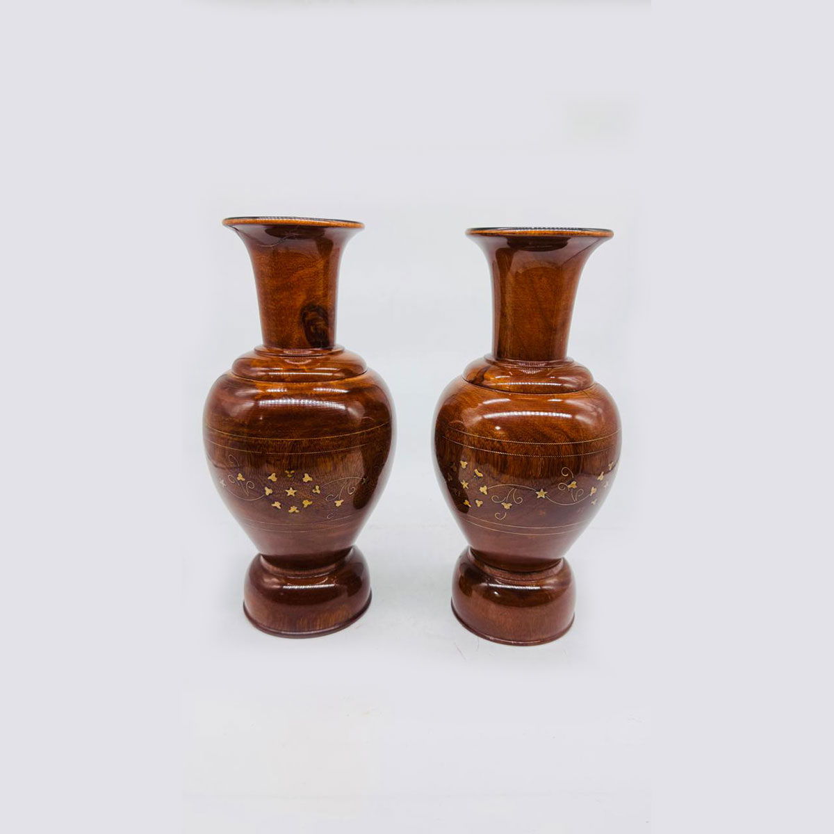 Enhance your interior decoration with this handmade wooden Guldasta vase set, beautifully crafted with traditional brass work and smooth wood polish finishing. The elegant combination of wood and brass creates a classic decorative look that complements both modern and traditional interiors.