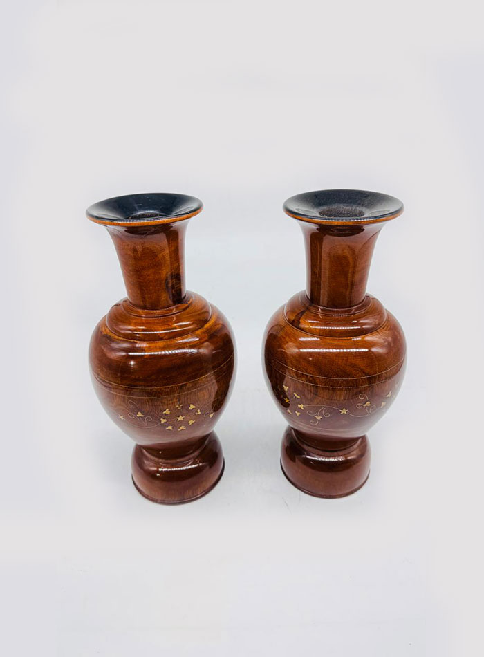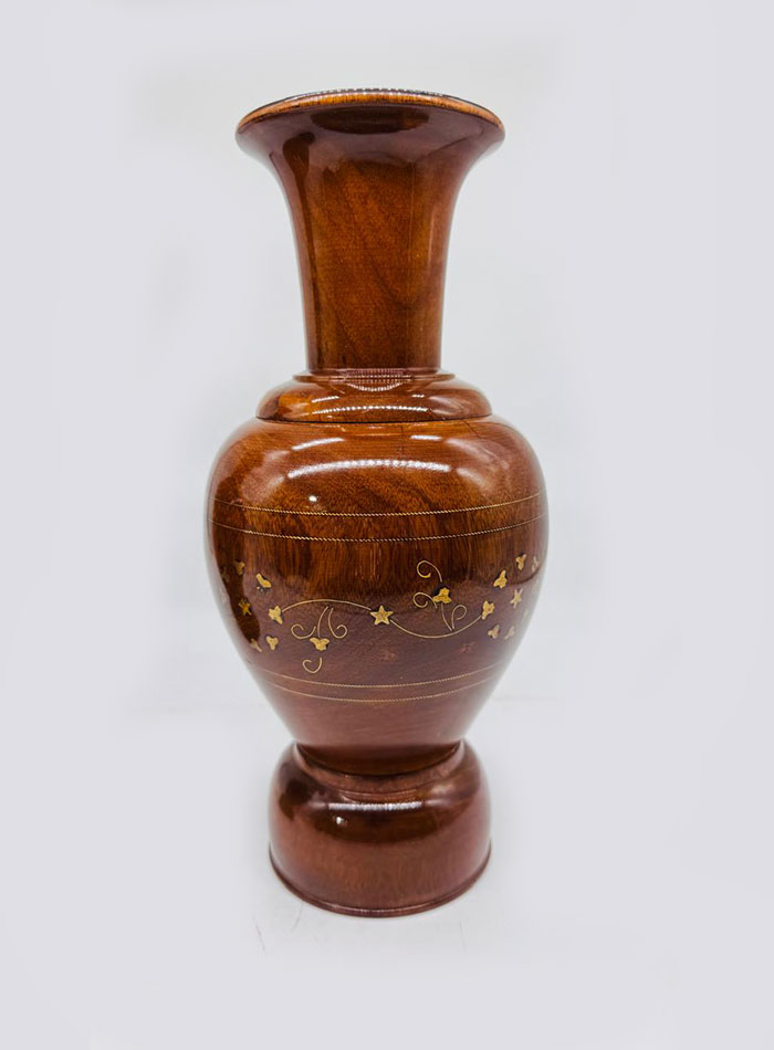 wooden guldasta vase handmade brass work with wood polish – decorative flower vaseWooden Guldasta Vase Handmade Brass Work with Wood Polish – Decorative Flower Vase