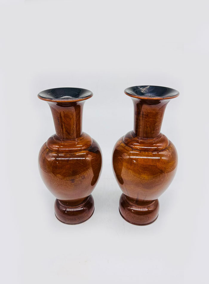 Wooden Guldasta Vase Handmade Wood Polish Fancy Plain Design – Decorative Flower Vase