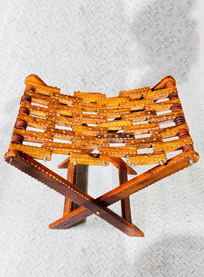 Enhance your seating and décor with this handmade wooden sitting stool featuring elegant brass work. Designed with traditional craftsmanship, this stool offers both beauty and functionality. The foldable structure makes it easy to store and carry, perfect for flexible use in homes, majlis settings, or gatherings.