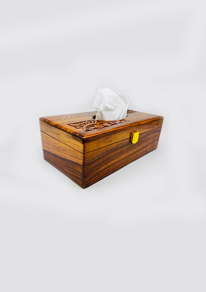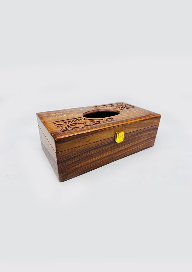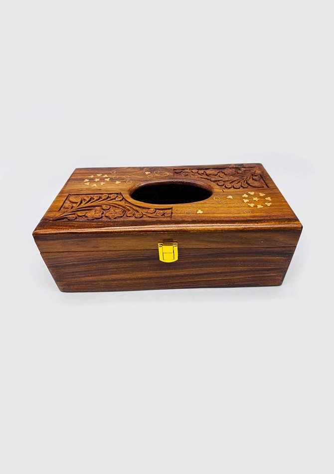 Add a classic decorative touch to your space with this handmade wooden tissue box featuring brass work detailing. Crafted with fine workmanship, this tissue holder combines traditional design with practical functionality.